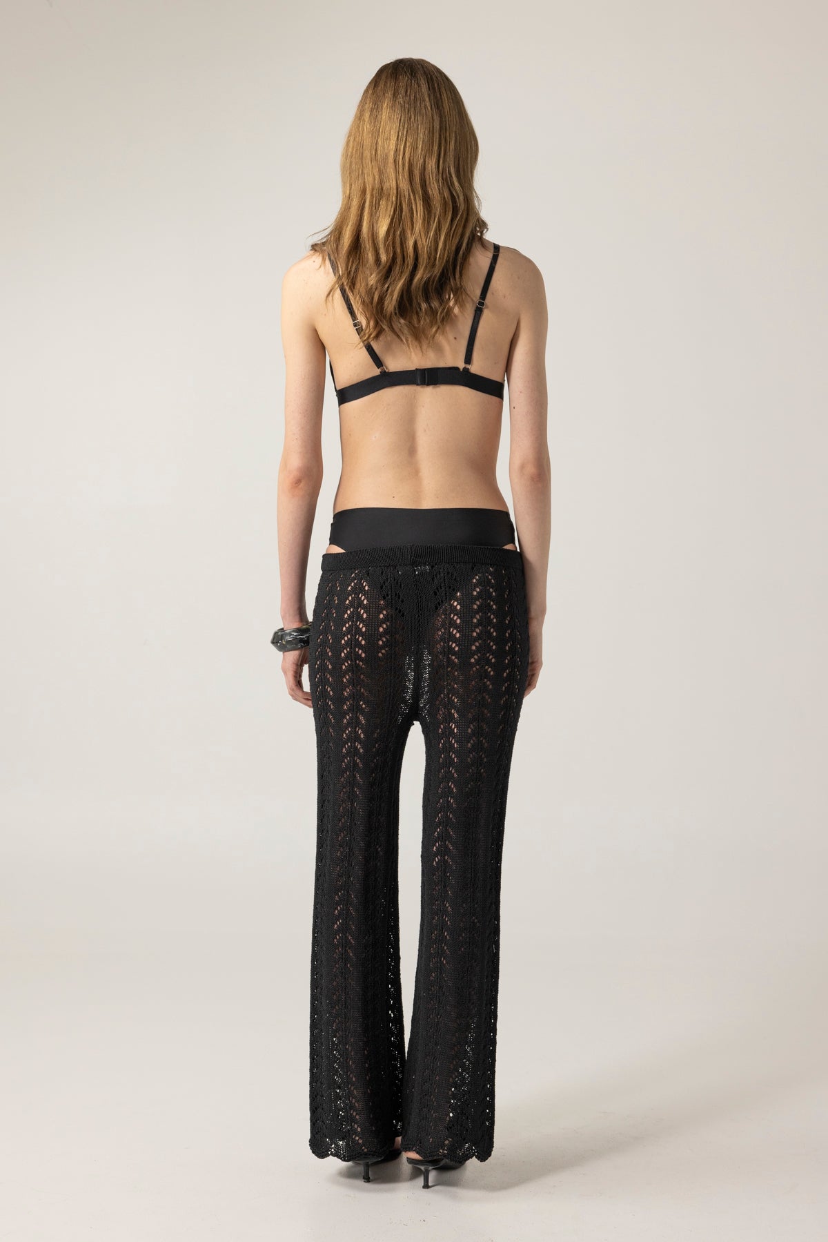 Morpho, özgüveni ve rahatlığı aynı potada buluşturan, sofistike bir sahil şıklığı sunar. El örgüsü file dokusuyla hazırlanan bu pantolon, hafif transparan yapısı ve esnek formu sayesinde plaj üstü kombinlerin yıldız parçası olmaya adaydır. Kalça kısmındaki ayarlanabilir bağlama detayı, hem vücuda uyum sağlar hem de estetik bir siluet yaratır. Günlük stilinde cesur ama yalın bir dokunuş isteyenler için tasarlandı.